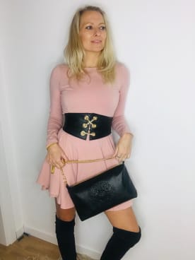 Elastic by the side for comfortable sitting and simple closing at the back.