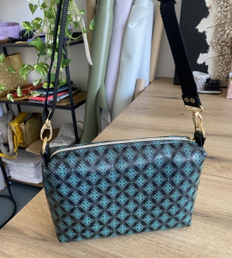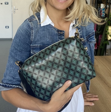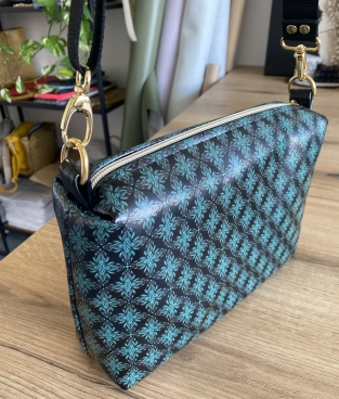 A strap bag with metal belt in gold or silver variations in beautifull color and pattern combinations. Available in two different sizes. Handmade and designed in Slovenia out of quality artificial leather and manufactured Italian accessories.