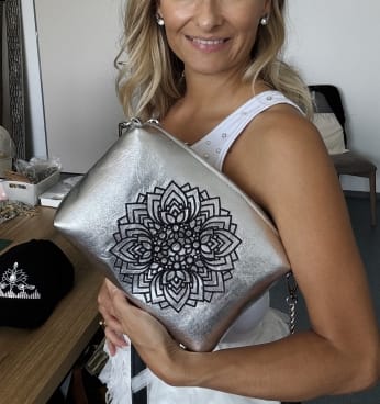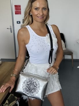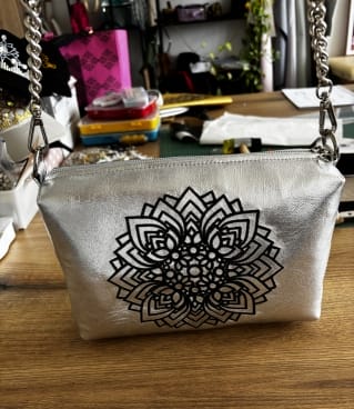 Borsetta a tracolla con ricamo originale URSHY. Di colore ARGENTO con accessori stupendi.