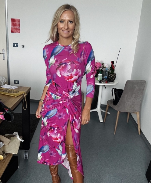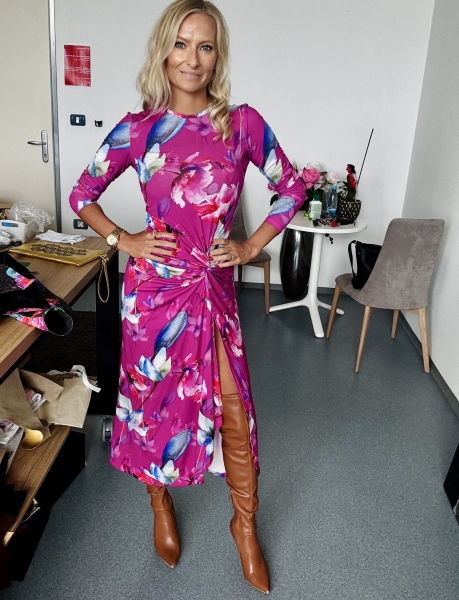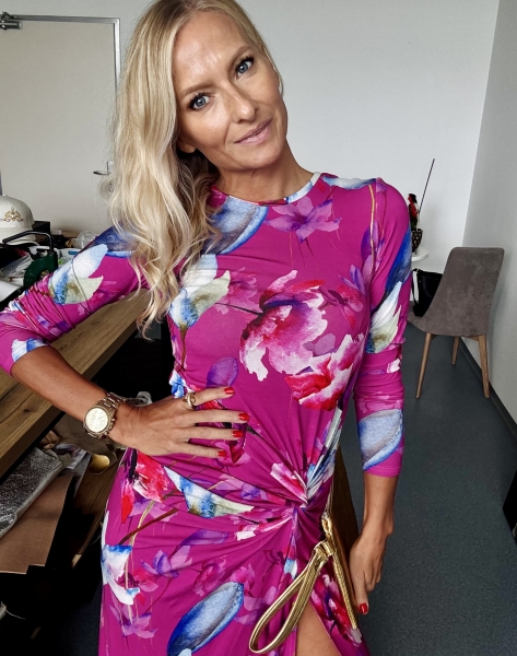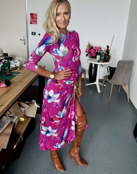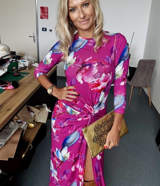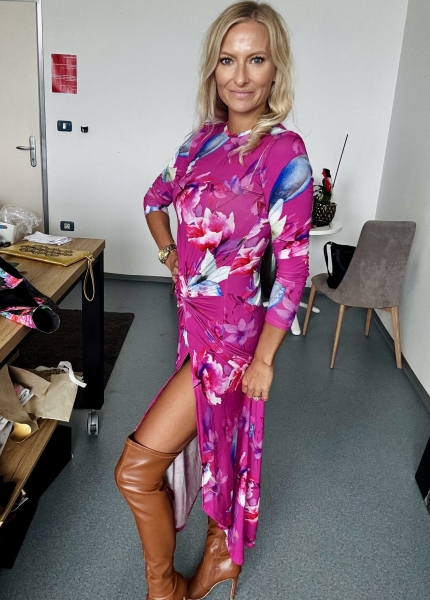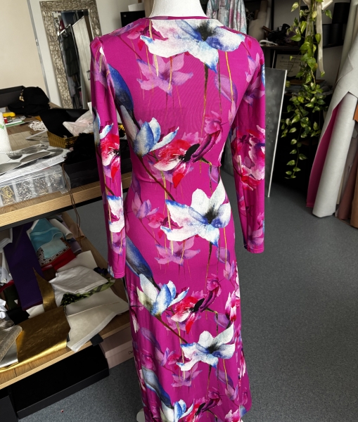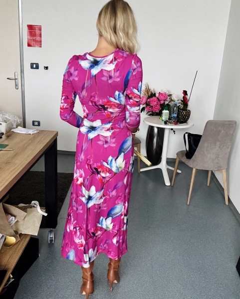 Un abito stupendo con fiori di colore fucsia. Feminile, sensuale, amore...