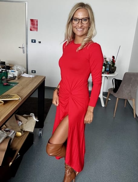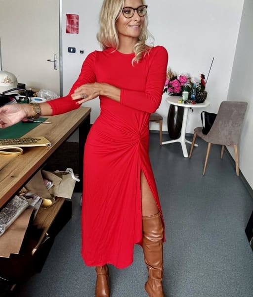 Ognjena rdeča v tem senzualenm kroju, udobju elastičnega bombaža in najlepših občutkov biti Ženska.