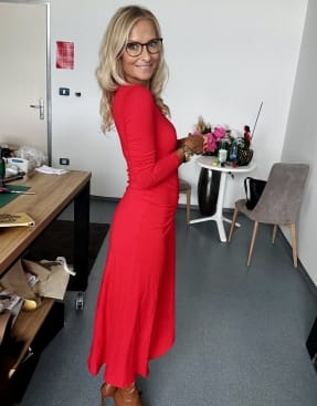 Poseben kroj in ognjena rdeča, energije Boginje in romantičnega občutka. Ona romantizira sebe in svoje življenje. Je ognjena v svojem delovanju, zaveda se svoje lepote in vsak korak v tej obleki je ena sama čutnost, ki se vidi, občuti in živi.